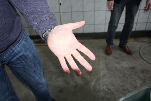 Reinigen der Öl verschmutzten Hände